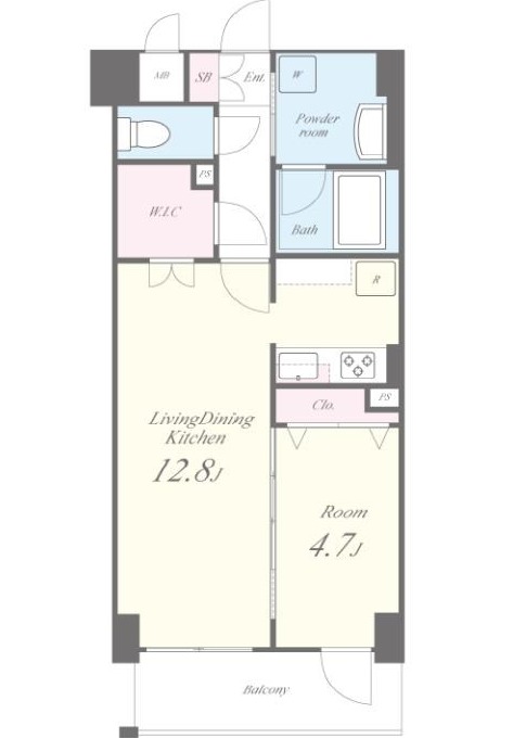 | 間取り詳細 | LDK 12.8畳 、 洋室 4.7畳 |