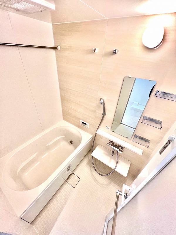 | 設備 | ガス(都市ガス)、インターホン(TVモニター付き)、防犯カメラ、オートロック、宅配ボックス、専用ゴミ置き場(24Hゴミ出し可)、駐輪場、日当り良好、通風良好、フローリング、全居室フローリング、クッションフロア、ベランダ・バルコニー、L字型バルコニー、クローゼット、クローゼット数(1)、ウォークインクローゼット、ウォークインクローゼット数(1)、下駄箱、バス・トイレ別(別室)、シャワー、追い焚き、浴室乾燥機、脱衣所、給湯、3点給湯、ウォシュレット、洗面台、洗面所独立、シャンプードレッサー、洗濯機置き場(室内)、コンロ設置済、コンロ口数(3)、コンロ種類(都市ガス)、グリル、システムキッチン、エアコン、エアコン台数(1)、24H換気システム、インターネット使用料無料 | ||