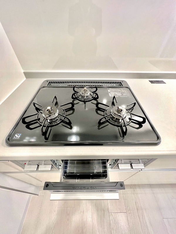 グリル付きの3口コンロで段取り良くお料理が出来ます♪