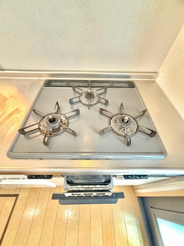 | 設備 | ガス(都市ガス)、インターホン(TVモニター付き)、専用ゴミ置き場(あり)、駐輪場、日当り良好、通風良好、フローリング、全居室フローリング、クッションフロア、間接照明、ベランダ・バルコニー、クローゼット、クローゼット数(1)、ウォークインクローゼット、ウォークインクローゼット数(1)、下駄箱、バス・トイレ別(別室)、シャワー、浴室乾燥機、脱衣所、給湯、ウォシュレット、ウォームレット、洗面台、洗面所独立、シャンプードレッサー、洗面所にドア、洗濯機置き場(室内)、コンロ設置済、コンロ口数(3)、コンロ種類(都市ガス)、システムキッチン、カウンターキッチン、24H換気システム、CATV | ||