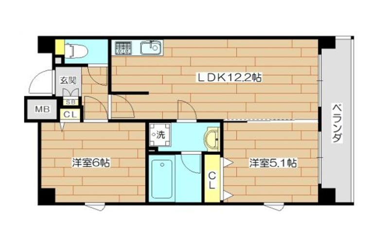 | 間取り詳細 | LDK 12.2畳 、 洋室 6.3畳 、 洋室 5.1畳 |