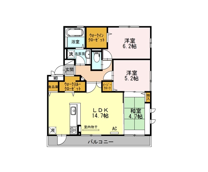 洋室 6.2畳 洋室 5.2畳 和室 4.7畳 |