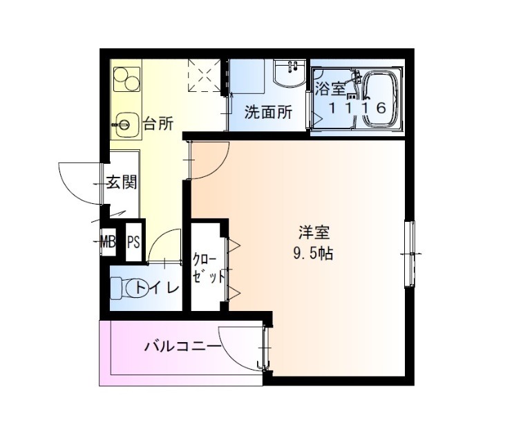 | 間取り詳細 | 洋室 9.5畳 、 K 2.5畳 |