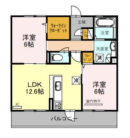 | 間取り詳細 | LDK 12.6畳 、 洋室 6畳 、 洋室 6畳 |
