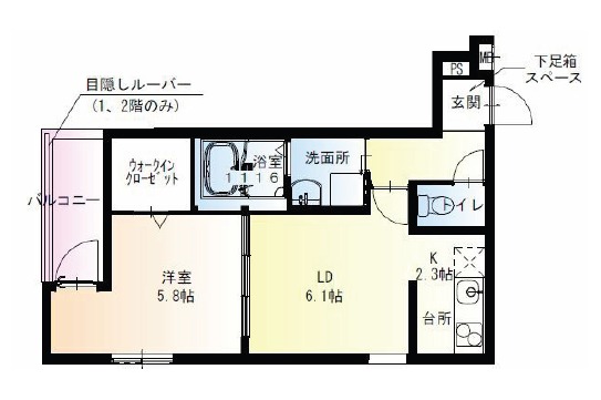 | 間取り詳細 | LDK 8.4畳 、 洋室 5.8畳 |