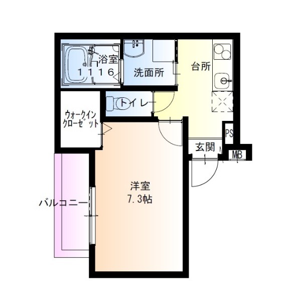 | 間取り詳細 | K 2.5畳 、 洋室 7.3畳 |