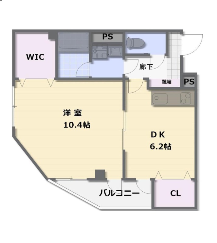 | 間取り詳細 | DK 6.2畳 、 洋室 10.4畳 |