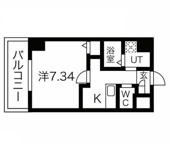 | 間取り詳細 | K 2.5畳 、 洋室 7.34畳 |