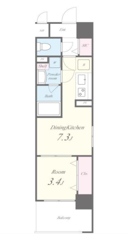 | 間取り詳細 | DK 7.3畳 、 洋室 3.4畳 |