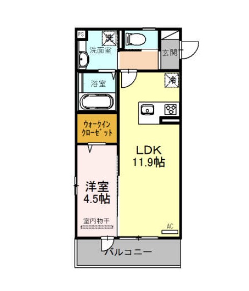 | 間取り詳細 | LDK 11.9畳 、 洋室 4.5畳 |