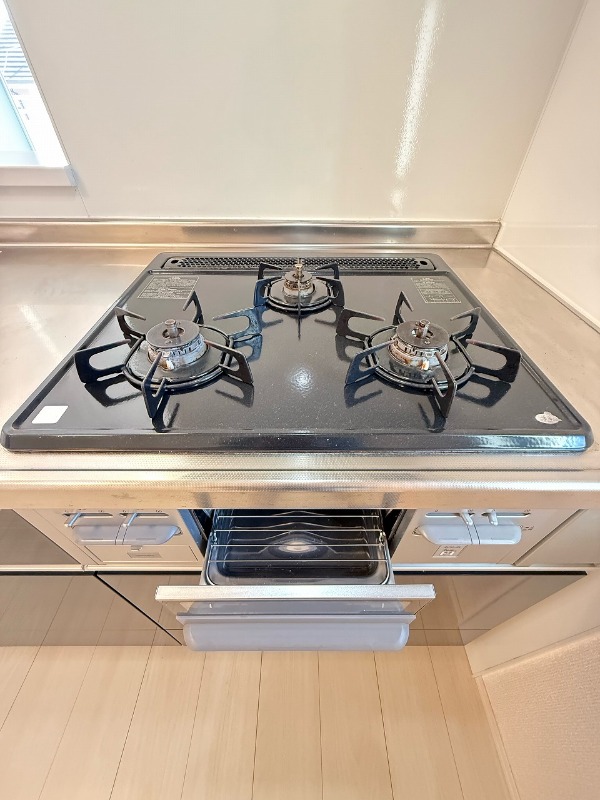グリル付きの3口コンロで段取り良くお料理が出来ます♪