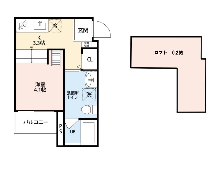 | 間取り詳細 | 洋室 4.1畳 、 K 3.3畳 |