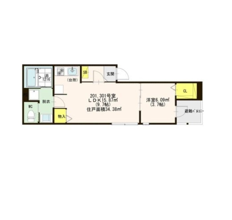 | 間取り | 1LDK | 面積 | 34.38㎡ |