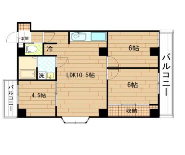 | 間取り詳細 | LDK 10.5畳 、 洋室 6畳 、 洋室 6畳 、 洋室 4.5畳 |