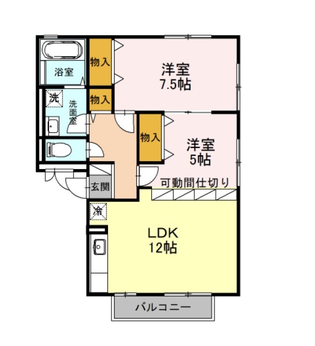 | 間取り詳細 | LDK 12畳 、 洋室 5畳 、 洋室 7.5畳 |