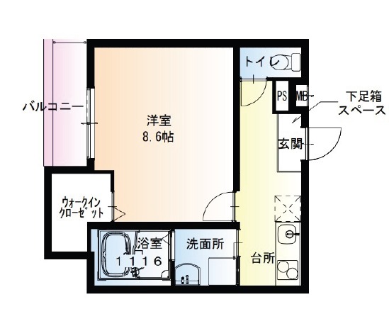 | 間取り詳細 | 洋室 8.6畳 、 K 2.5畳 |