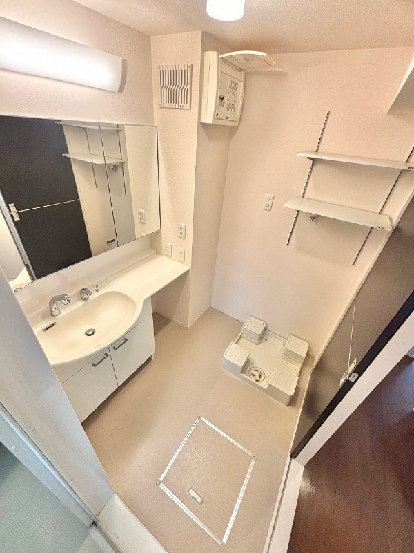 | 設備 | ガス(都市ガス)、インターホン(TVモニター付き)、カードキー、専用ゴミ置き場(あり)、日当り良好、角部屋、通風良好、フローリング、全居室フローリング、クッションフロア、ベランダ・バルコニー、クローゼット、クローゼット数(4)、下駄箱、バス・トイレ別(別室)、シャワー、追い焚き、浴室乾燥機、脱衣所、給湯、ウォシュレット、洗面台、洗面所独立、シャンプードレッサー、洗濯機置き場(室内)、コンロ設置済、コンロ口数(3)、コンロ種類(都市ガス)、グリル、システムキッチン、カウンターキッチン、エアコン、エアコン台数(1)、24H換気システム、インターネット使用料無料 | ||