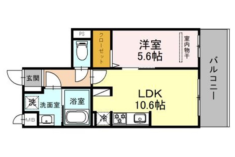| 間取り詳細 | LDK 10.6畳 、 洋室 5.6畳 |