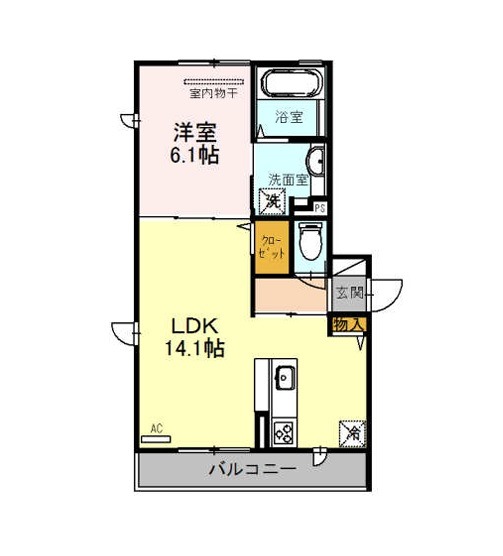 | 間取り詳細 | LDK 14.1畳 、 洋室 6.1畳 |