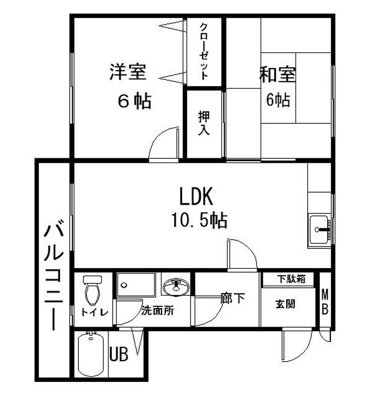 | 間取り詳細 | LDK 10.5畳 、 洋室 6畳 、 和室 6畳 |