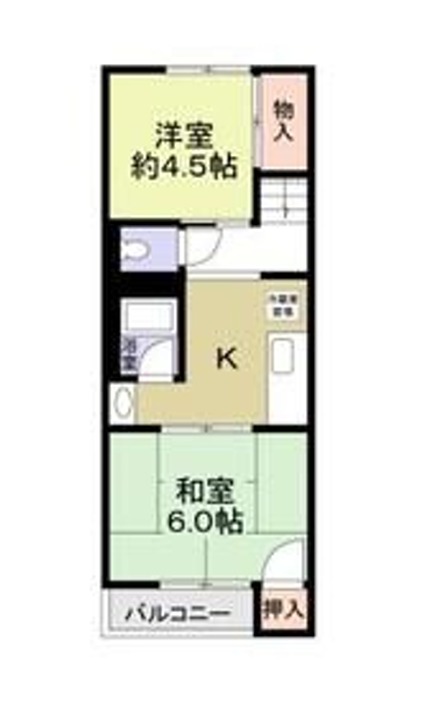 | 間取り詳細 | K 3畳 、 洋室 4.5畳 、 和室 6畳 |