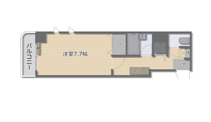 | 間取り詳細 | 洋室 7.7畳 、 K 2.5畳 |