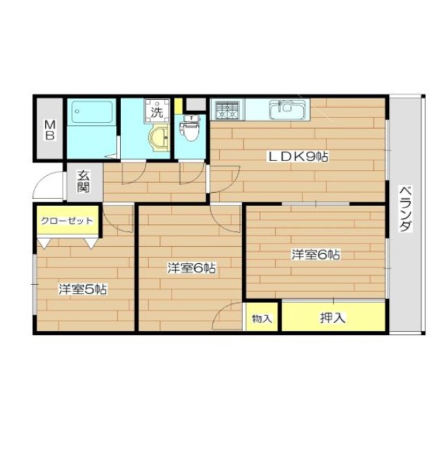 | 間取り詳細 | LDK 9畳 、 洋室 6畳 、 洋室 5畳 、 洋室 6畳 |