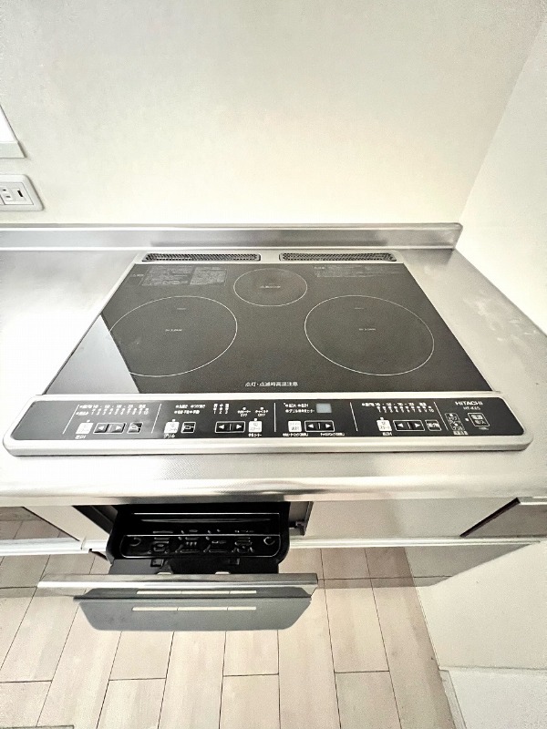 | 設備 | インターホン(TVモニター付き)、防犯カメラ、宅配ボックス、専用ゴミ置き場(あり)、駐輪場、バイク置き場、日当り良好、通風良好、フローリング、全居室フローリング、クッションフロア、照明器具、ベランダ・バルコニー、クローゼット、クローゼット数(1)、下駄箱、バス・トイレ別(別室)、シャワー、追い焚き、浴室乾燥機、脱衣所、給湯、ウォシュレット、洗面台、洗面所独立、シャンプードレッサー、洗濯機置き場(室内)、コンロ設置済、コンロ口数(3)、コンロ種類(IH)、グリル、システムキッチン、カウンターキッチン、エアコン、エアコン台数(1)、24H換気システム、CATV、光ファイバー、インターネット使用料無料 | ||