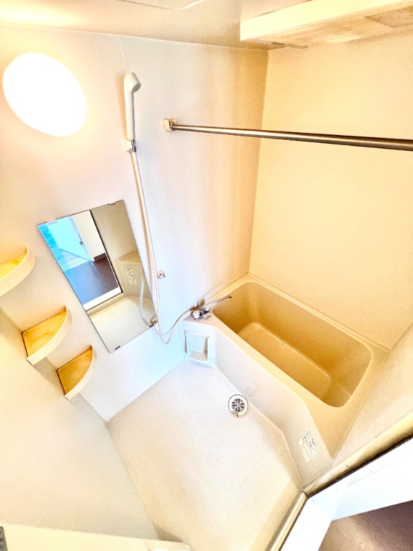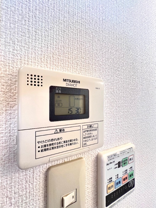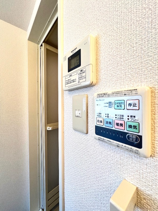 | 設備 | インターホン(音声)、専用ゴミ置き場(あり)、駐輪場、通風良好、フローリング、全居室フローリング、クッションフロア、照明器具、バス・トイレ別(別室)、シャワー、浴室乾燥機、脱衣所、給湯、洗面台、洗面所独立、洗濯機置き場(室内)、コンロ設置済、コンロ口数(1)、コンロ種類(IH)、エアコン、エアコン台数(1) | ||