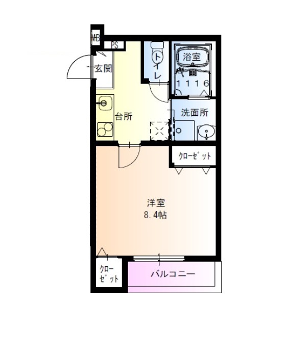 | 間取り詳細 | 洋室 8.4畳 、 K 2.5畳 |