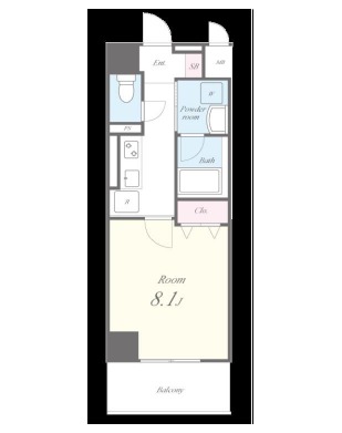 | 間取り詳細 | 洋室 8.1畳 、 K 2.5畳 |