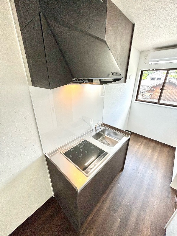 | 設備 | インターホン(TVモニター付き)、宅配ボックス、専用ゴミ置き場(あり)、駐輪場、バイク置き場、通風良好、フローリング、全居室フローリング、クッションフロア、バス・トイレ別(別室)、シャワー、脱衣所、給湯、ウォシュレット、洗濯機置き場(室内)、コンロ設置済、コンロ口数(2)、コンロ種類(IH)、システムキッチン、エアコン、エアコン台数(1) | ||