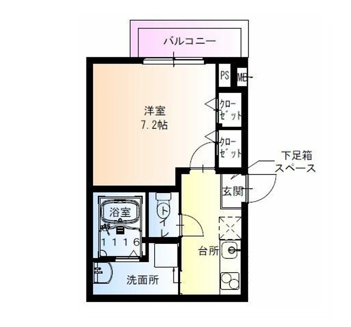 | 間取り詳細 | K 2.5畳 、 洋室 7.2畳 |
