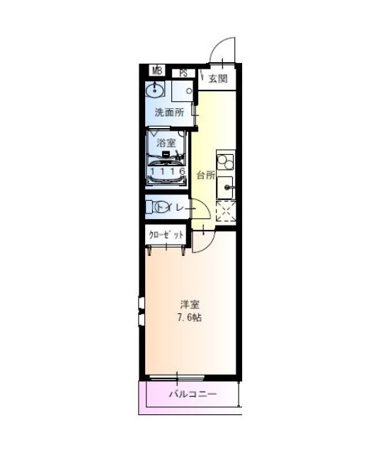 | 間取り詳細 | K 2.5畳 、 洋室 7.6畳 |
