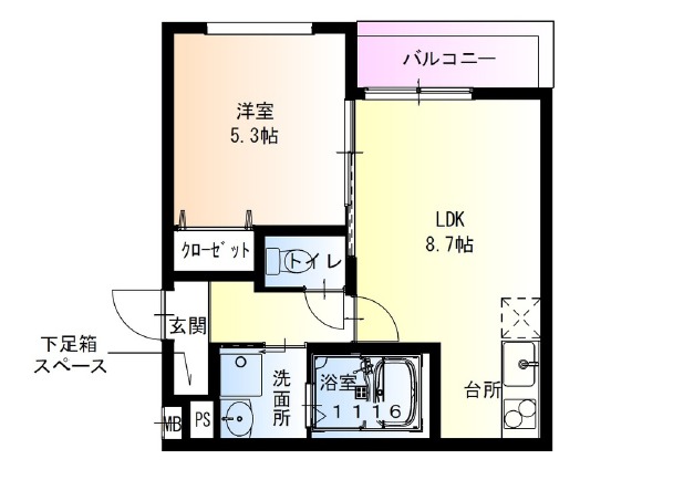 | 間取り詳細 | LDK 8.7畳 、 洋室 5.3畳 |