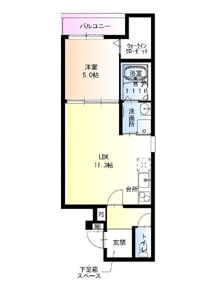 | 間取り詳細 | LDK 11.3畳 、 洋室 5畳 |
