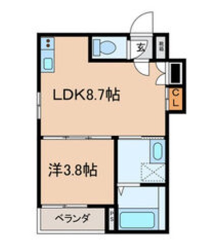 | 間取り詳細 | LDK 8.7畳 、 洋室 3.8畳 |