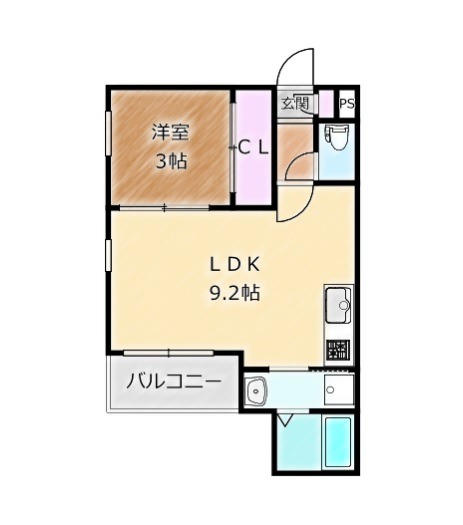 | 間取り詳細 | LDK 9.2畳 、 洋室 3畳 |