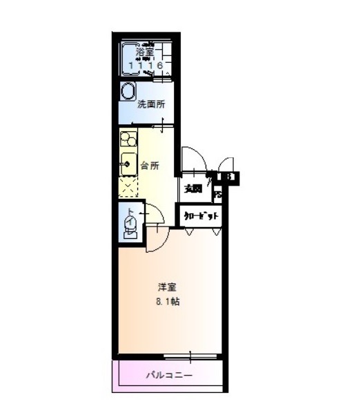 | 間取り詳細 | K 2.5畳 、 洋室 8.1畳 |