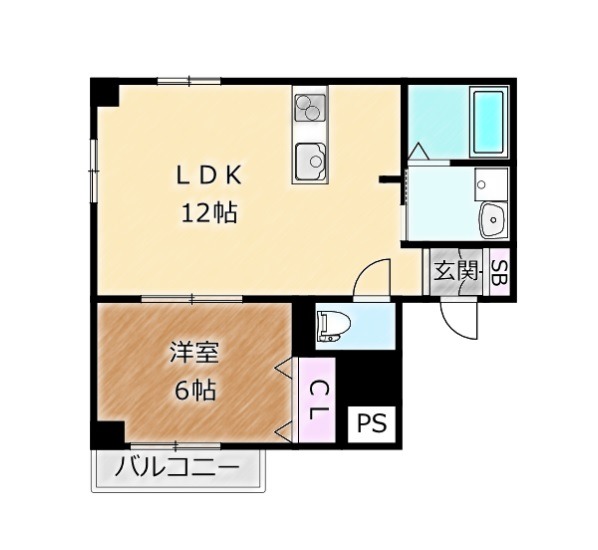 | 間取り詳細 | LDK 12畳 、 洋室 6畳 |