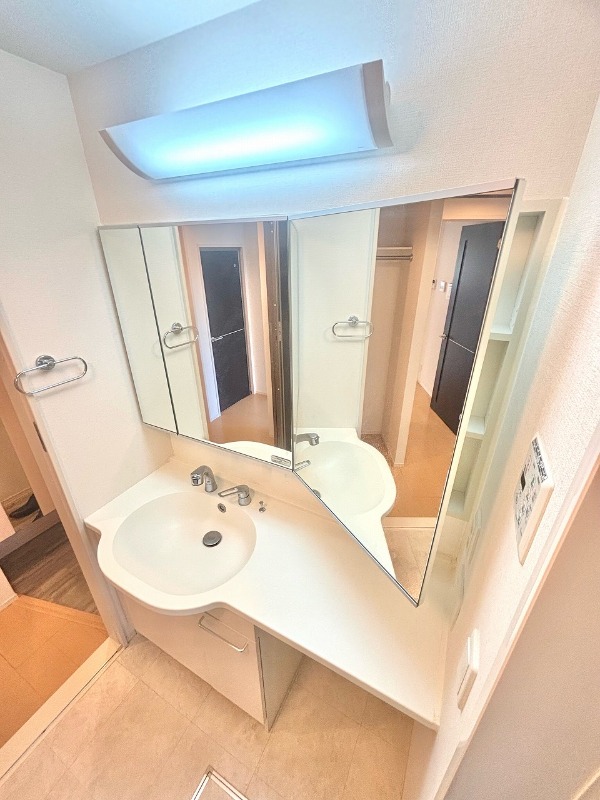 | 設備 | ガス(都市ガス)、インターホン(TVモニター付き)、カードキー、オートロック、専用ゴミ置き場(あり)、駐輪場、日当り良好、通風良好、フローリング、全居室フローリング、クッションフロア、間接照明、ベランダ・バルコニー、ウォークインクローゼット、ウォークインクローゼット数(1)、下駄箱、バス・トイレ別(別室)、シャワー、追い焚き、浴室乾燥機、脱衣所、給湯、ウォシュレット、ウォームレット、洗面台、洗面所独立、シャンプードレッサー、洗面所にドア、洗濯機置き場(室内)、コンロ設置済、コンロ口数(3)、コンロ種類(都市ガス)、グリル、システムキッチン、エアコン、エアコン台数(1)、24H換気システム、CATV、インターネット使用料無料 | ||