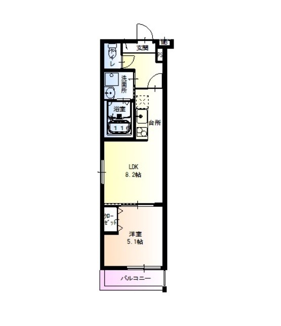 | 間取り詳細 | LDK 8.2畳 、 洋室 5.1畳 |