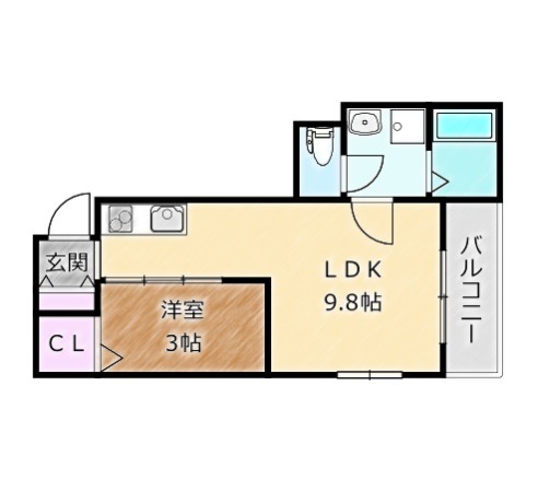 | 間取り詳細 | LDK 9.8畳 、 洋室 3畳 |