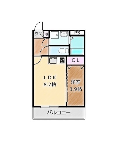 | 間取り詳細 | LDK 8.28畳 、 洋室 3.9畳 |