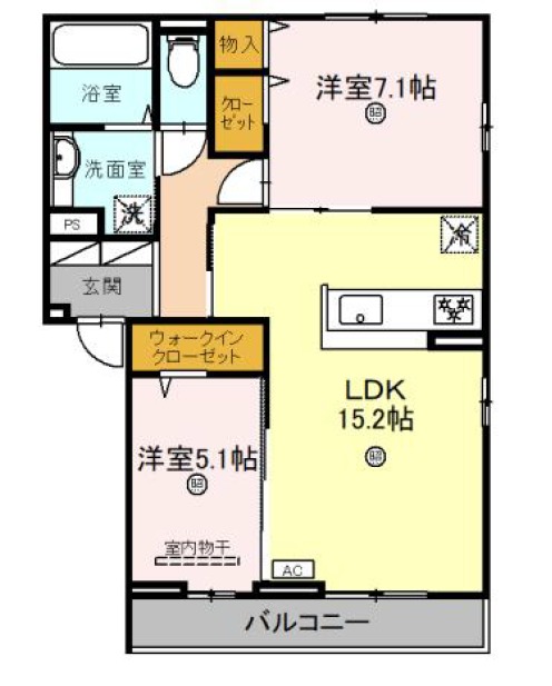 | 間取り詳細 | LDK 15.2畳 、 洋室 7.1畳 、 洋室 5.1畳 |