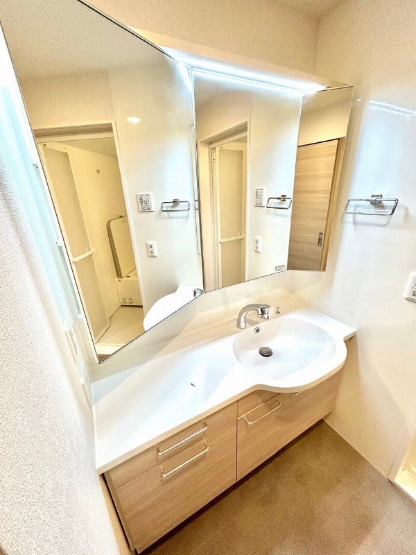 | 設備 | ガス(都市ガス)、インターホン(TVモニター付き)、防犯カメラ、カードキー、オートロック、宅配ボックス、専用ゴミ置き場(あり)、駐輪場、日当り良好、通風良好、フローリング、全居室フローリング、クッションフロア、照明器具、ベランダ・バルコニー、クローゼット、クローゼット数(2)、ウォークインクローゼット、ウォークインクローゼット数(1)、バス・トイレ別(別室)、シャワー、追い焚き、脱衣所、給湯、ウォシュレット、洗面台、洗面所独立、シャンプードレッサー、洗濯機置き場(室内)、コンロ設置済、コンロ口数(3)、コンロ種類(都市ガス)、グリル、システムキッチン、カウンターキッチン、エアコン、エアコン台数(1)、24H換気システム、CATV、インターネット使用料無料 | ||