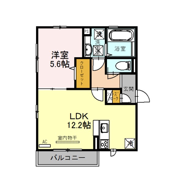| 間取り詳細 | LDK 12.2畳 、 洋室 5.6畳 |