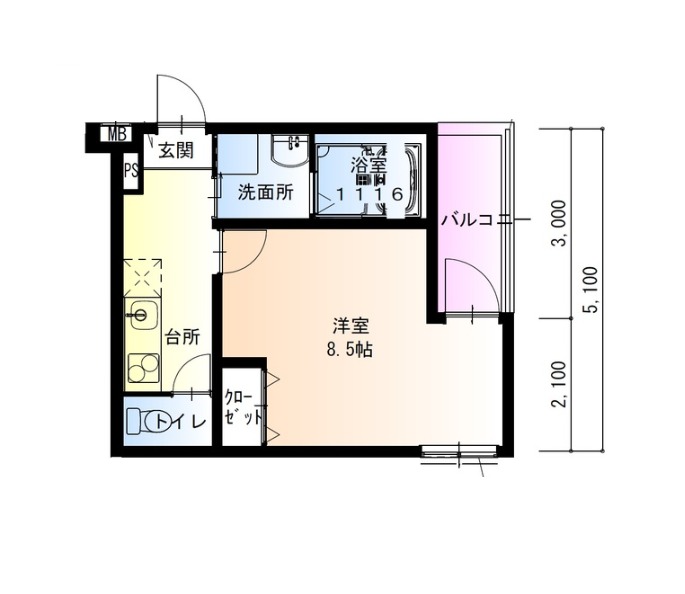 | 間取り | 1K | 面積 | 28.02㎡ |