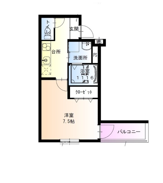 | 間取り詳細 | 洋室 7.5畳 、 K 2.5畳 |