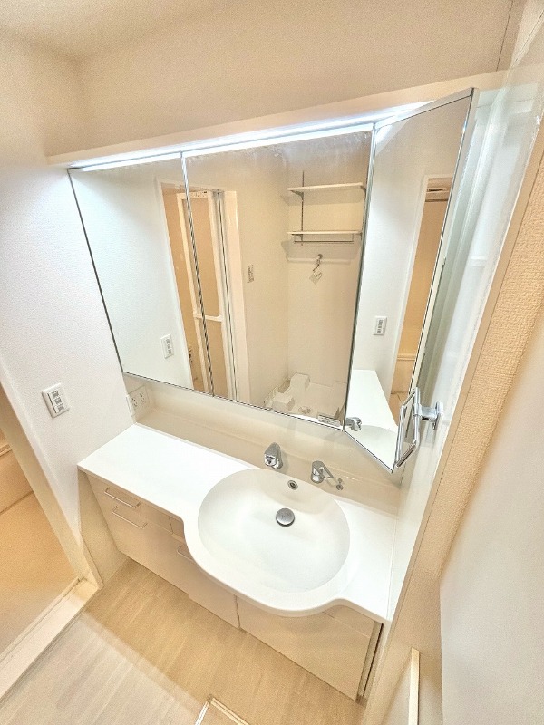 | 設備 | ガス(都市ガス)、インターホン(TVモニター付き)、防犯カメラ、オートロック、宅配ボックス、専用ゴミ置き場(あり)、駐輪場、日当り良好、通風良好、フローリング、全居室フローリング、クッションフロア、ベランダ・バルコニー、クローゼット、クローゼット数(2)、ウォークインクローゼット、ウォークインクローゼット数(1)、下駄箱、バス・トイレ別(別室)、シャワー、追い焚き、浴室乾燥機、脱衣所、給湯、ウォシュレット、洗面台、洗面所独立、シャンプードレッサー、洗濯機置き場(室内)、コンロ設置済、コンロ口数(3)、コンロ種類(都市ガス)、グリル、システムキッチン、カウンターキッチン、エアコン、エアコン台数(1)、24H換気システム、CATV | ||